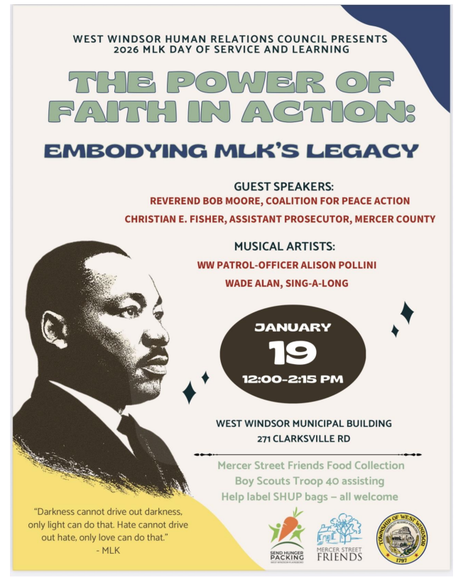 • Martin Luther King Community Day, West Windsor Municipal Building, Conference Room A