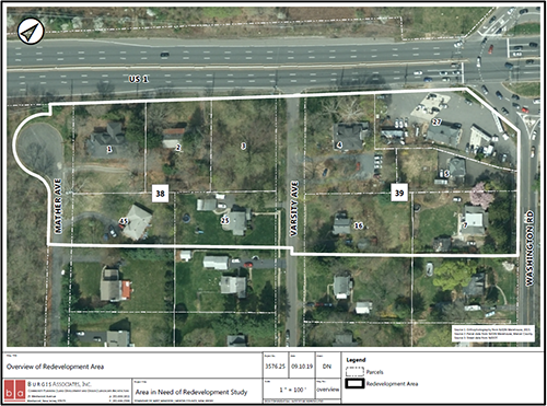 In September 2019, the Township Council of the Township of West Windsor (Resolution 2019-R191) designated the area consisting of the properties designated as Block 38, Lots 1, 2, 3, 25 and 45 and Block 39, Lots 4, 5, 7, 16 and 27 on the Official Tax Map of the Township. (the Redevelopment Area) as an area in need of redevelopment in accordance with the Local Development and Housing Law N.J.S.A 40:12A-1 (Redevelopment Law).