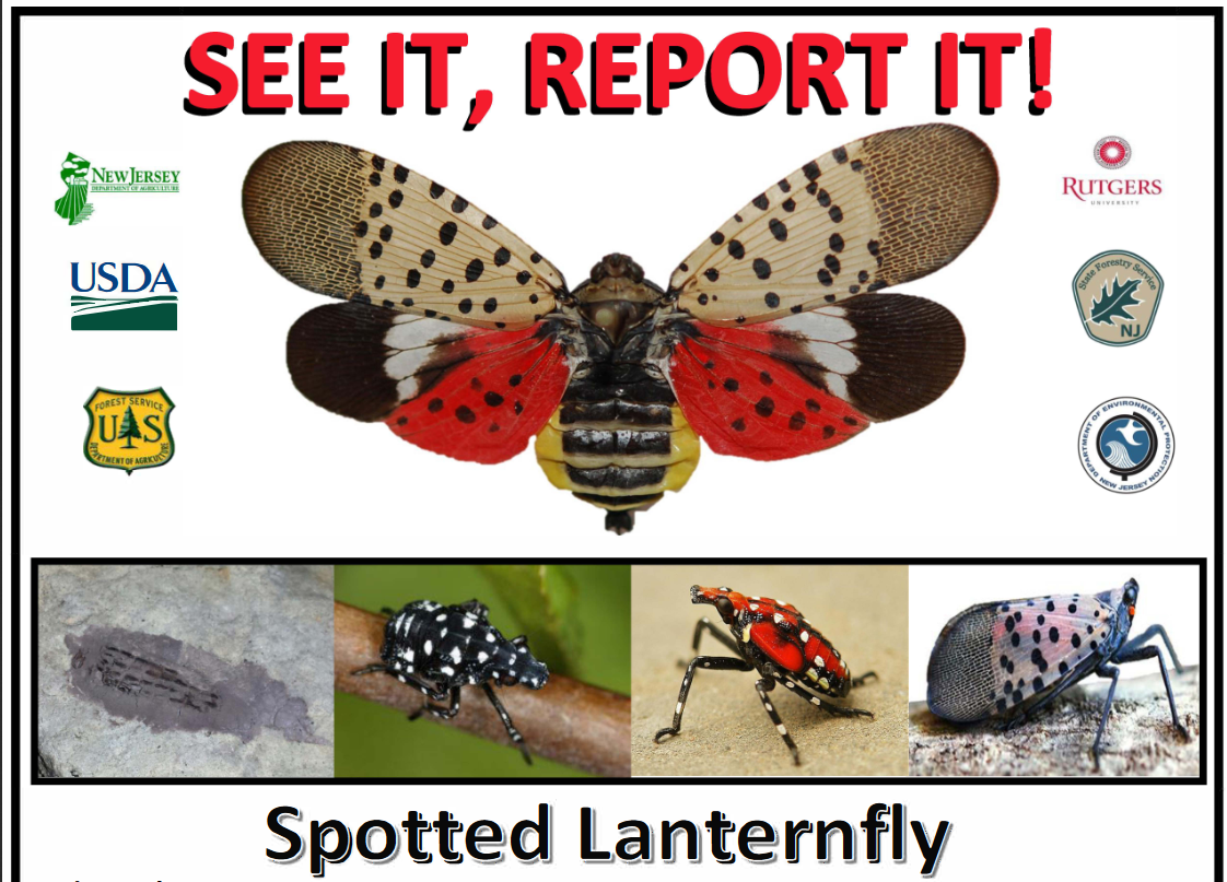 Spotted Lanternfly is an invasive pest that has been found in Mercer County that threatens NJ agriculture. The State of New Jersey is requesting your help in the effort to control its spread! If you think you see it in any of its life stages on a property within West Windsor Township, please report your sighting to the Township at SLFLY@westwindsortwp.com. Please include a date, location by street address or known landmark, and a photo if possible.