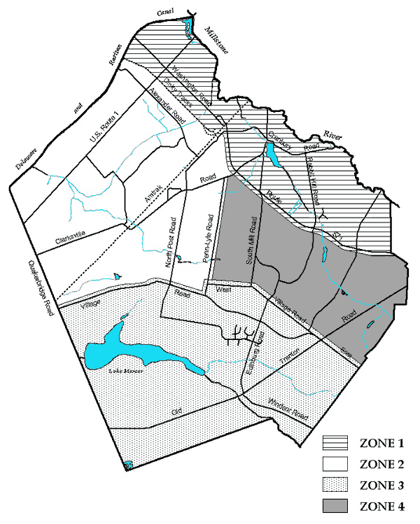 From Route 295 or Route 95: Exit at Route 1 north. Stay in right lane - Make first right hand turn (very close to off ramp.) There will be a sign that reads: Department of Motor Vehicle and Grovers Mill Road. Follow directions "From the south..." above. If you miss Grovers Mill Road, go to Quakerbridge Road. Get off on Quakerbridge Road heading east, and go to second traffic light. Make a left onto Clarksville Road and follow Clarksville Road as it curves around and over a railroad bridge. Continue on Clarksville Road, The Municipal Building will be on your left before the first traffic light. Turn left at the sign for the Municipal Complex.
